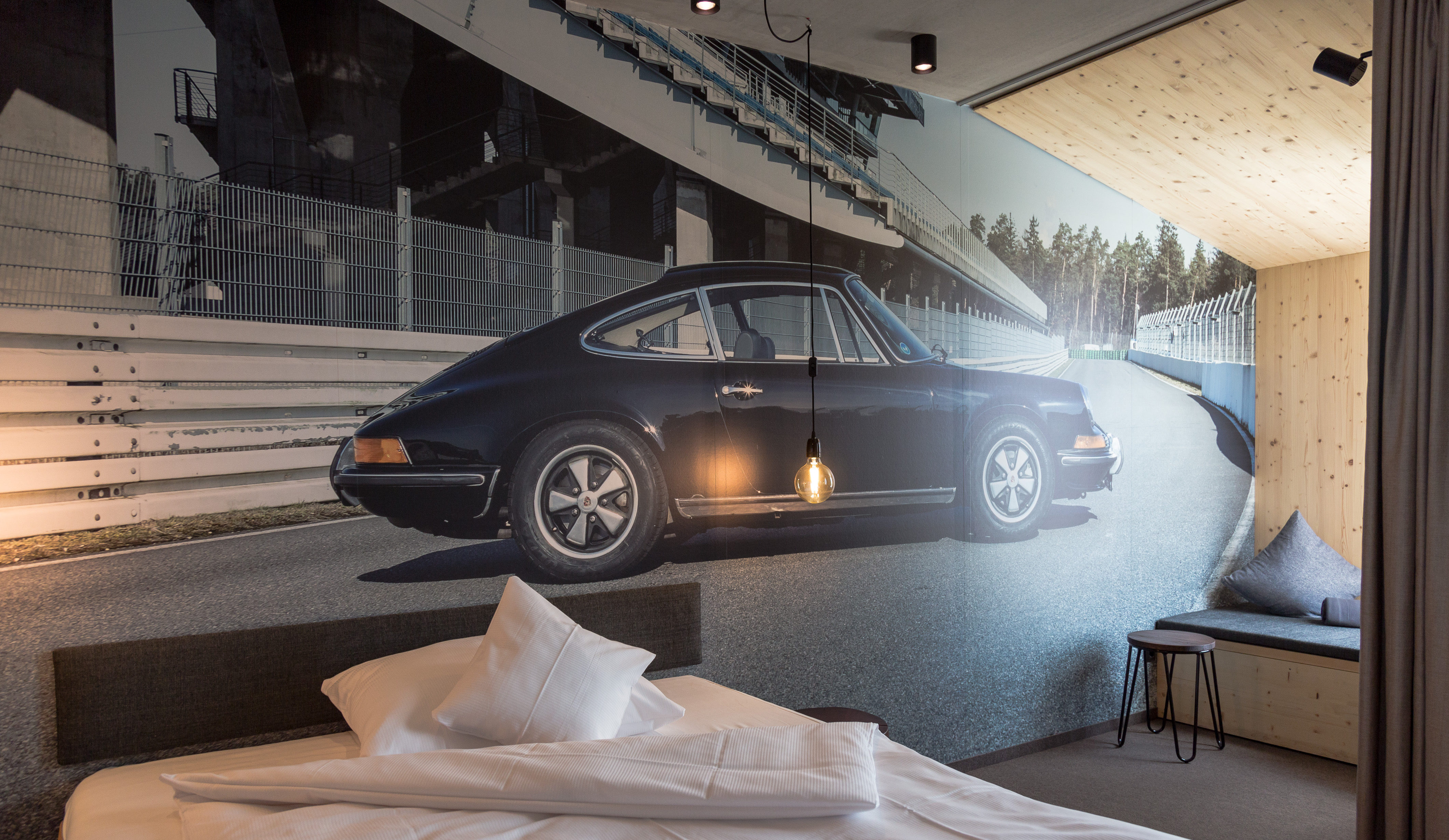 elferrooms verfügt über 12 sonnige Zimmer mit eigenem kleinen Balkon. Besonderes Flair verleihen die Motivtapeten klassischer 911er Porsche aus eigener Sammlung, die in der Kulisse des nahegelegenen Hockenheimrings fotografiert wurden.